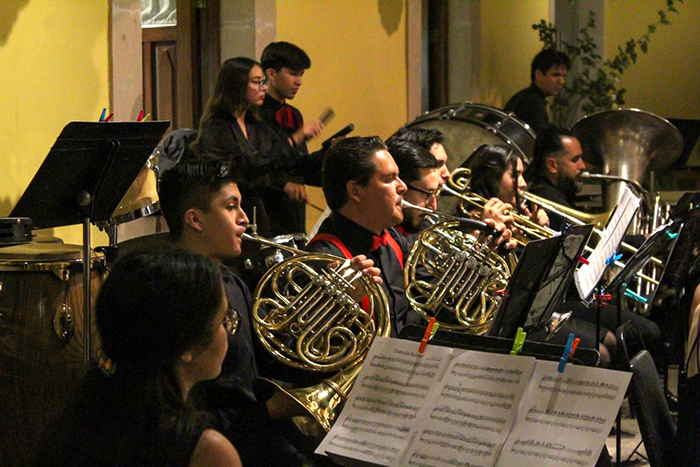 El recinto recibió a la orquesta integrada por docentes del CEM y alumnos de nivel avanzado de la institución, bajo la batuta de la maestra Melodía Gaytán, que ofreció una pequeña plática introductoria sobre los géneros interpretados.