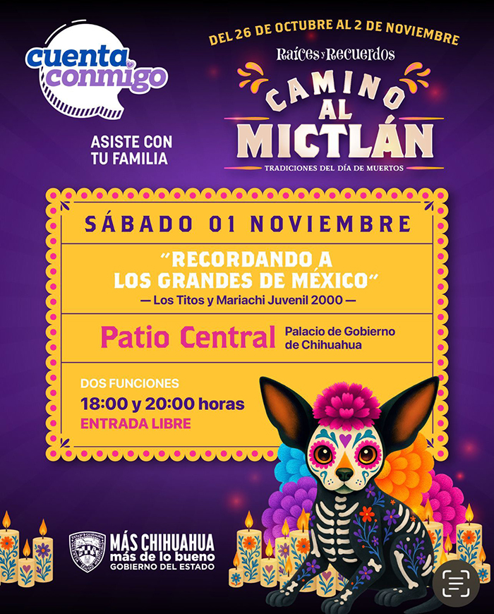 El Gobierno del Estado invita al público en general al festival musical que se efectuarán este fin de semana, como parte de los festejos por la Conmemoración del Día de Muertos denominados “Raíces y recuerdos: Camino al Mictlán”.