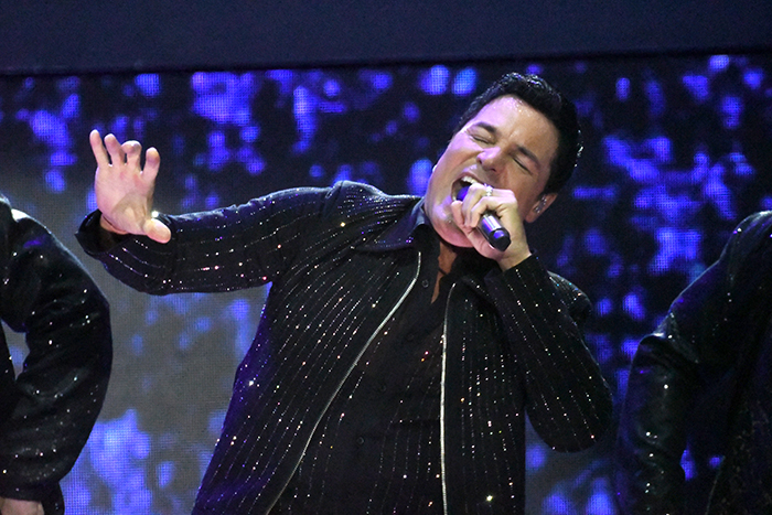 A las 21:20 horas, Chayanne apareció en el enorme escenario, adornado con varias pantallas gigantes, saliendo por la parte central superior del escenario, luciendo un atuendo negro. Fue recibido con una tremenda ovación mientras arrancaba su presentación con «Bailemos otra vez».