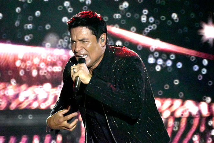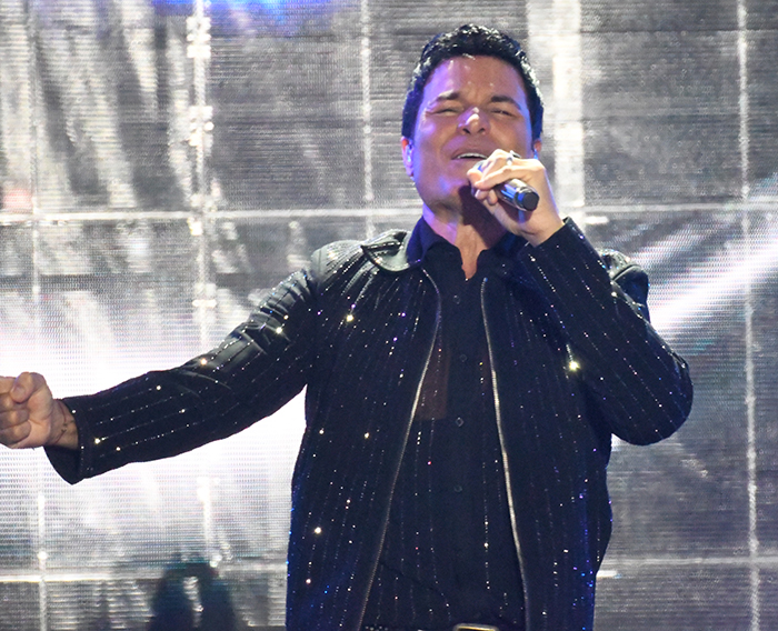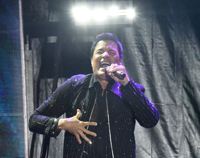 El boricua saludó a los chihuahuense y continuó con éxitos como «Salomé» y «Boom boom». Acompañado de su equipo de músicos y bailarines, se puso romántico con «El centro de mi corazón».