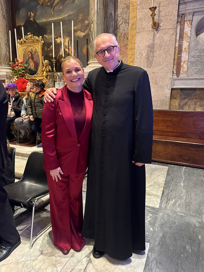 La gobernadora Maru Campos agradeció a monseñor Bongiovanni por recibirlos, así como al embajador Barranco y a su esposa, Teresa Loera, por la invitación para ser anfitriones este año en la Navidad Mexicana.