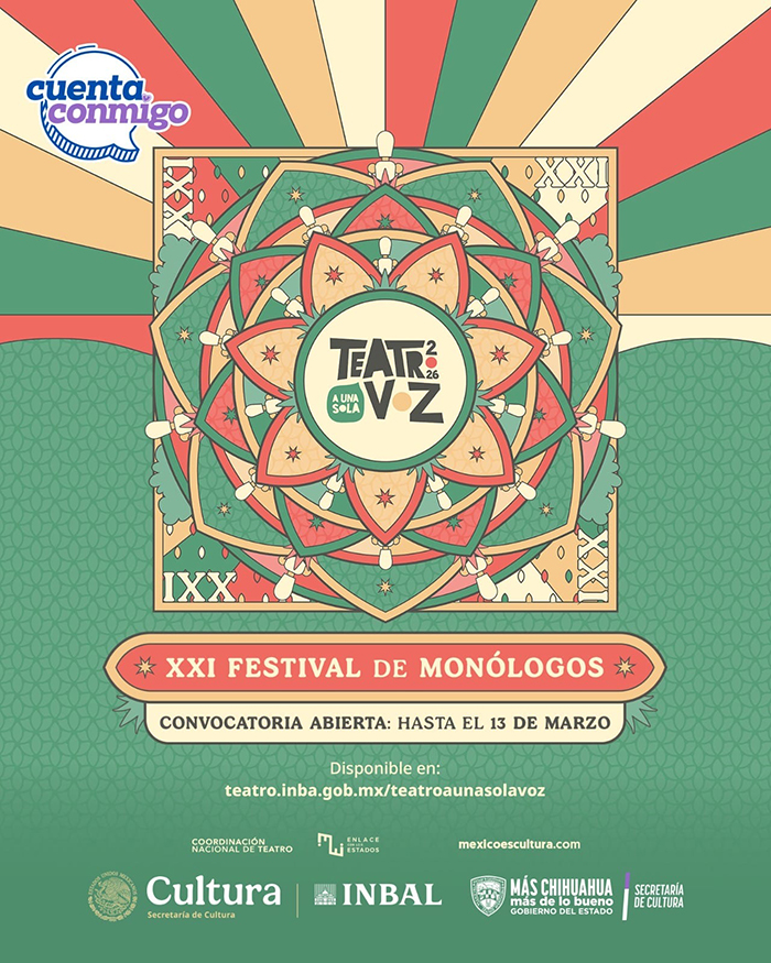 La Secretaría de Cultura, en coordinación con el Instituto Nacional de Bellas Artes y Literatura (INBAL), convocó a artistas escénicos del estado a participar en la edición XXI del Festival de Monólogos “Teatro a Una Sola Voz”, cuya convocatoria ya se encuentra abierta.