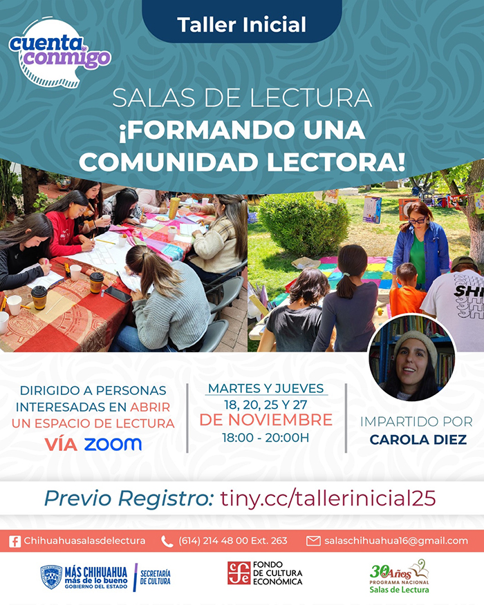 Para mayores informes, comunicarse al teléfono 614 214 4800, extensión 263, o al correo salaschihuahua16@gmail.com o en la página de facebook Chihuahuasalasdelectura.