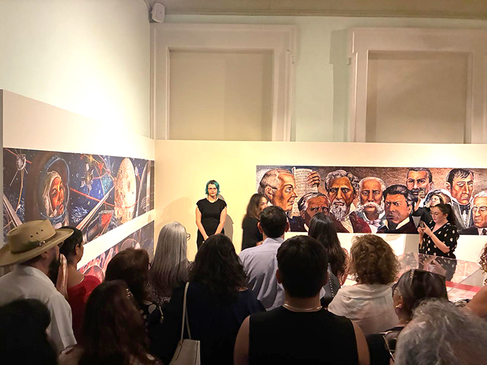 Las y los asistentes apreciaron la muestra de la reconocida muralista, acompañada por la lectura de fragmentos poéticos de la propia artista, en una atmósfera íntima y reflexiva que busca rendir homenaje a su legado artístico y literario.