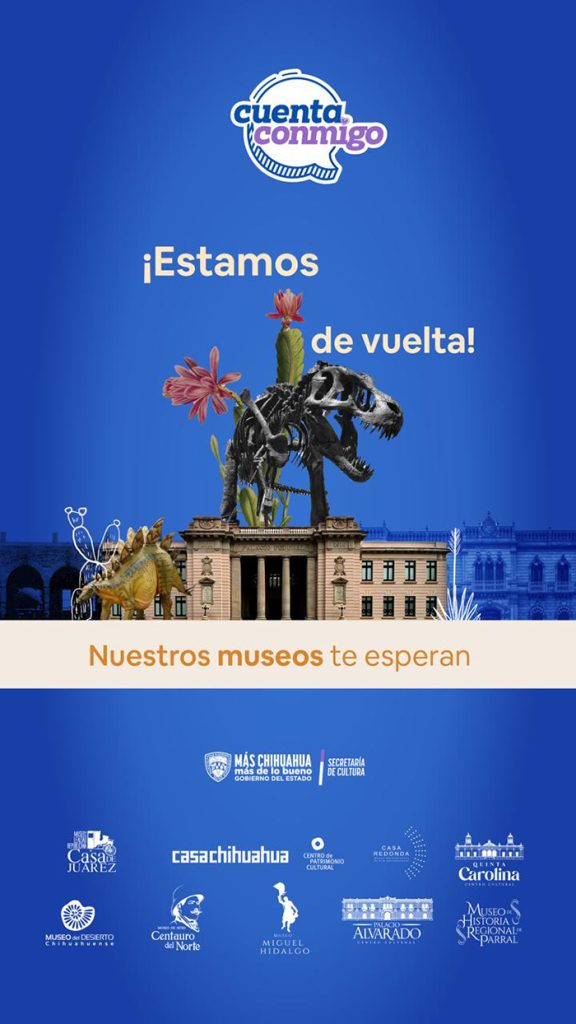 La Secretaría de Cultura invita a conocer la cartelera de actividades desde sus redes sociales y en www.culturachihuahua.com, así como las exposiciones temporales vigentes y permanentes, sus horarios y costos.