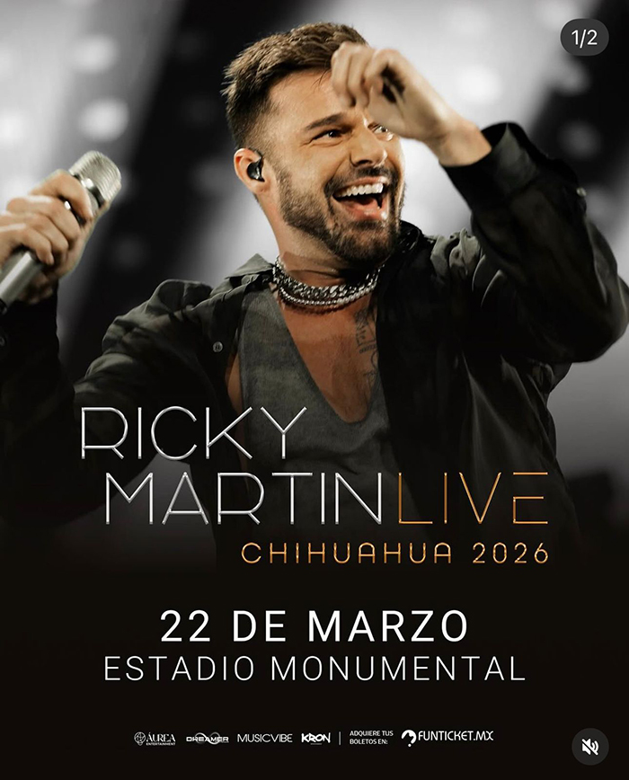 El próximo 22 de marzo de 2026, el cantante Ricky Martin, una de las figuras más influyentes de la música latina, ofrecerá un concierto imperdible en el Estadio Monumental Chihuahua.